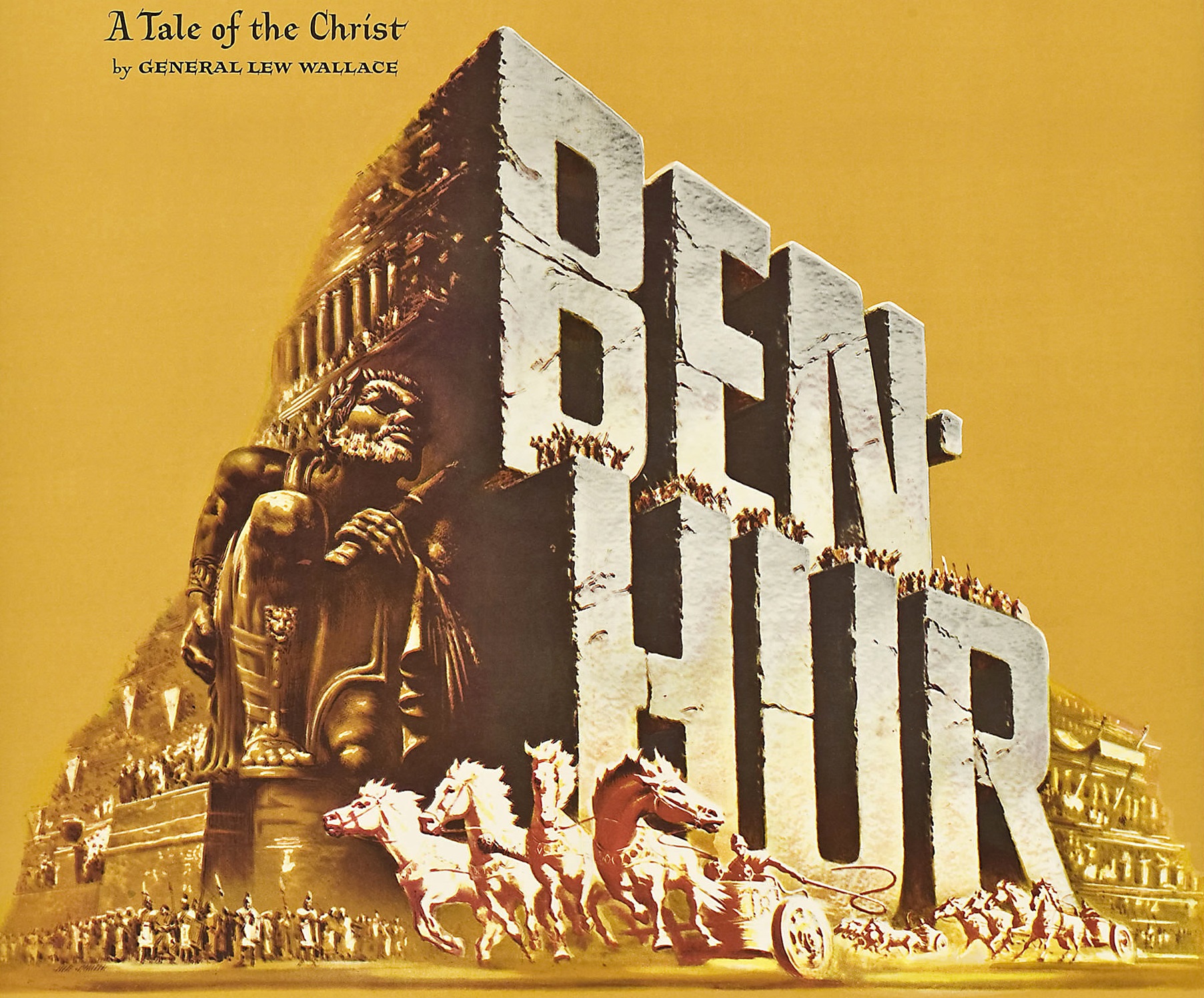| 於1959年上映之《賓虛》,為奧斯卡史上第一部獲得11項奧斯卡獎之作品──多年以來鮮有人提出質問,蓋因其為聖經題材作品;且平心而論,於畫面方面,影片確做到大片之效果也。(網絡圖片) |